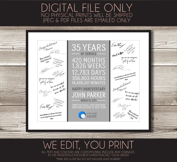 35th Work Anniversary Signatures Guest Book Customizable Etsy Canada