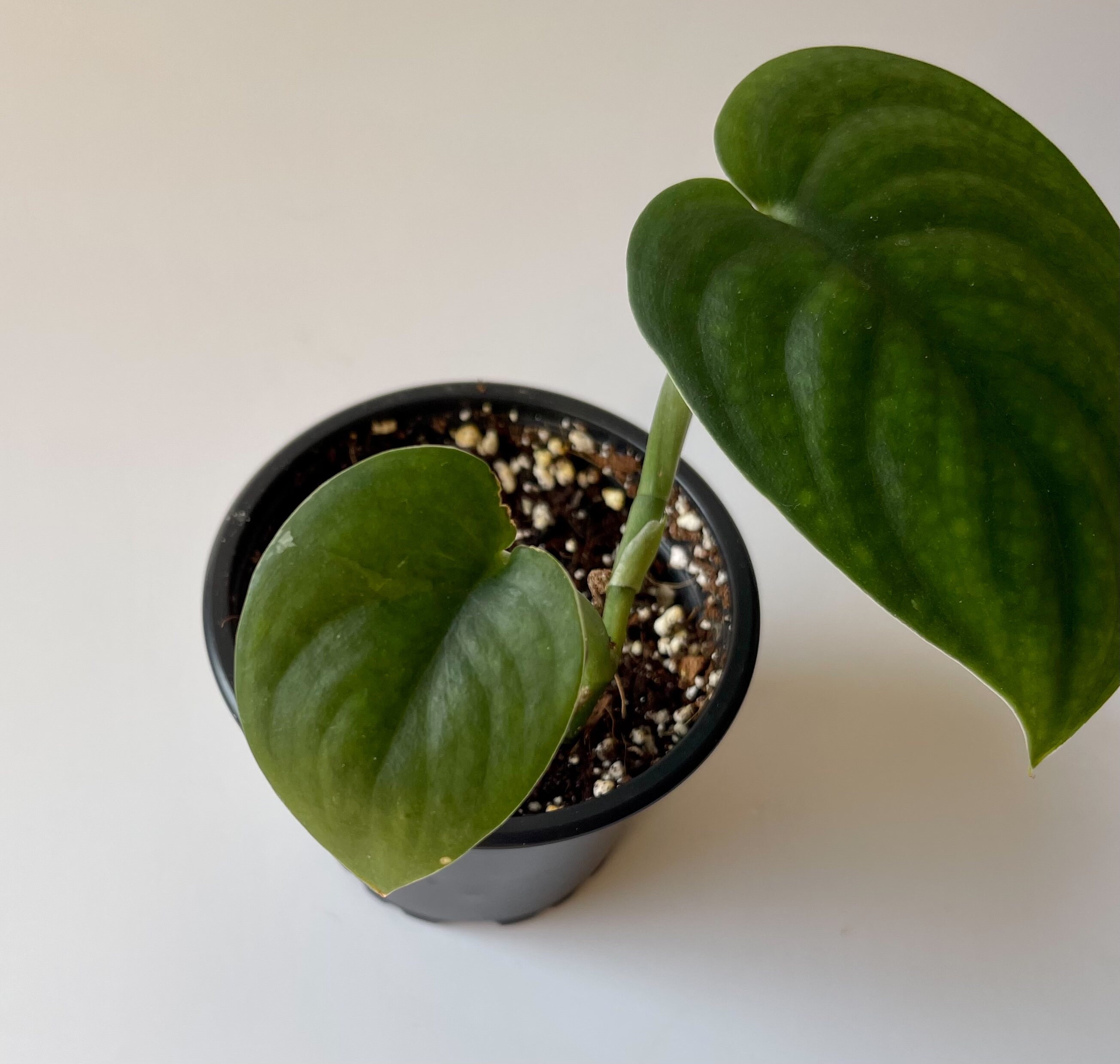 These climbing or trailing plants look great when their foliage dangles down from a shelf or windowsill or even grown as a hanging plant in a Macrame hanging planter. Keep them in partial- to bright-indirect light and water when the soil is mostly dry. People will top-dress Pothos with new dirt in the visible gaps.